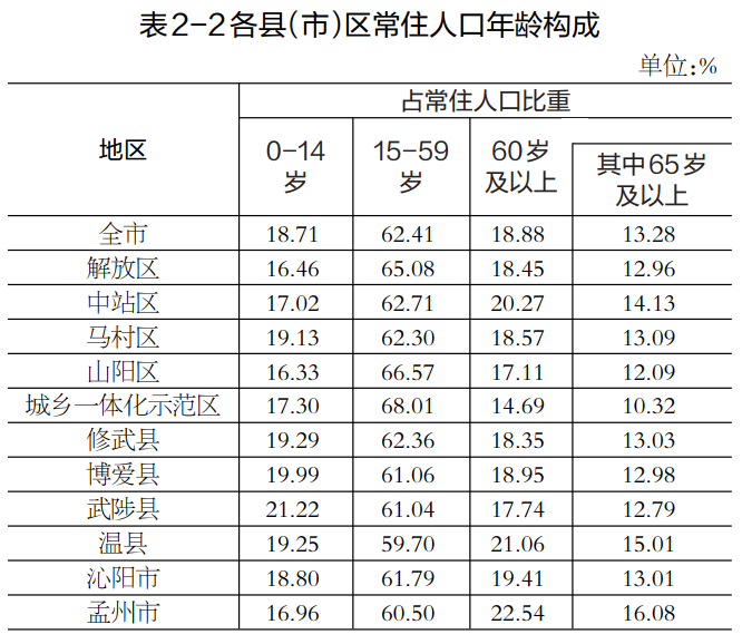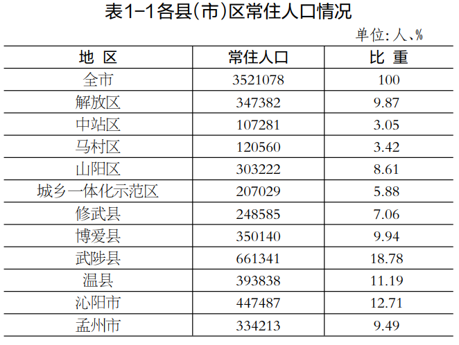 3.比重:指各縣(市)區(qū)常住人口占全市常住人口的比例。