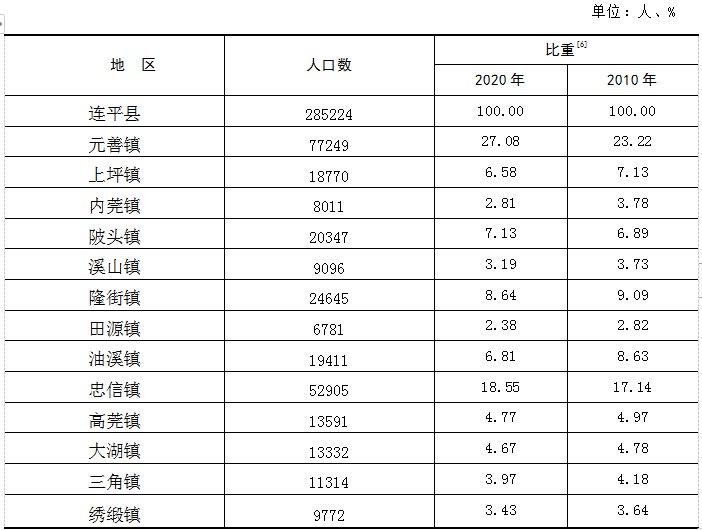 (廣東?。┻B平縣人口數(shù)據(jù)第七次全國人口普查公報