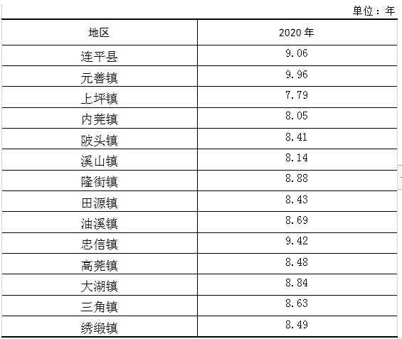表5各鎮(zhèn)15歲及以上人口平均受教育年限