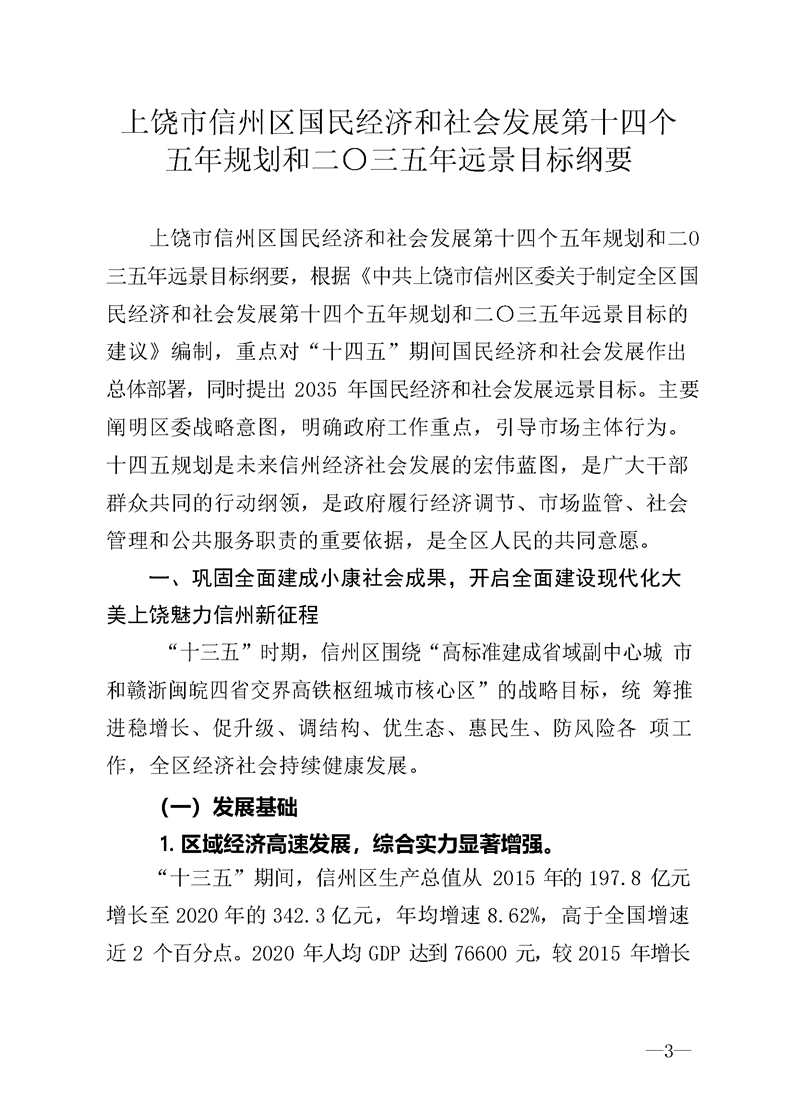 上饒市信州區(qū)國(guó)民經(jīng)濟(jì)和社會(huì)發(fā)展第十四個(gè)五年規(guī)劃和2035年遠(yuǎn)景目標(biāo)綱要資料下載_規(guī)劃綱要_模版下載