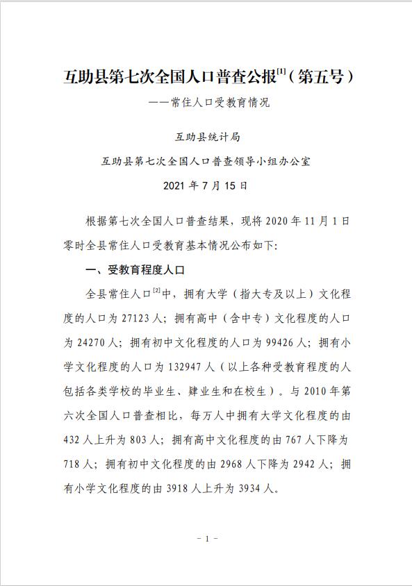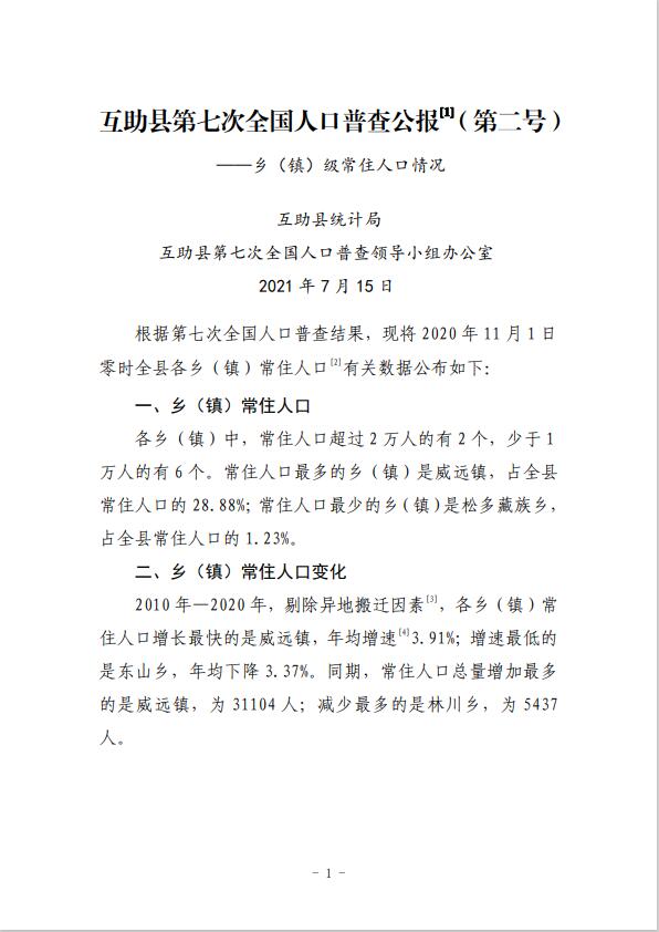 (青海?。┗ブ磷遄灾慰h人口數(shù)據(jù)第七次全國(guó)人口普查公報(bào)