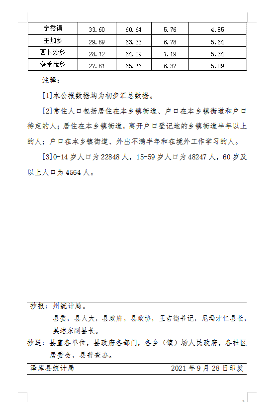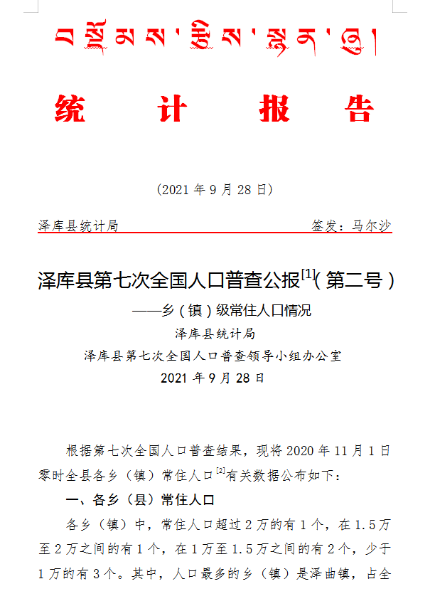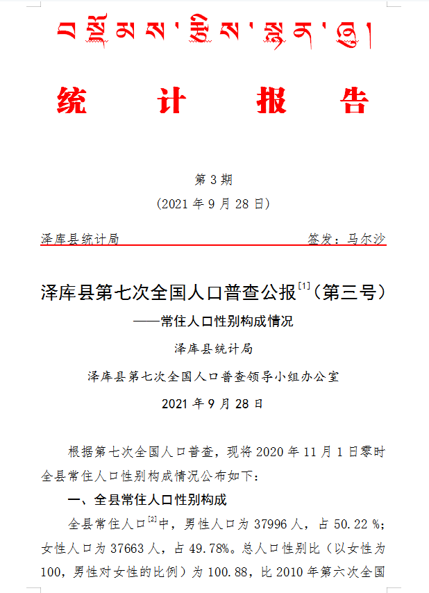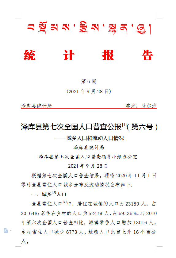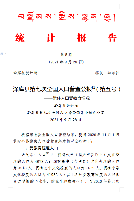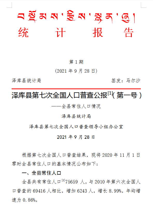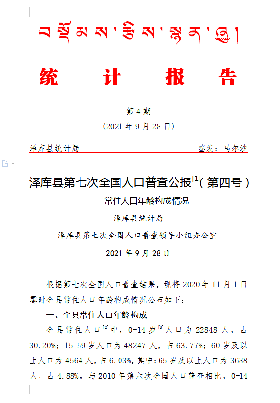 (青海省)澤庫縣人口數(shù)據(jù)第七次全國人口普查公報