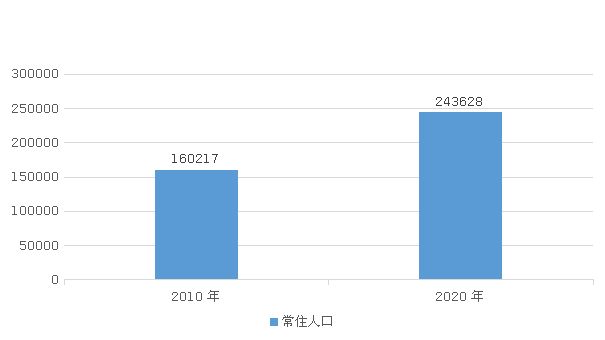 全區(qū)常住人口[3]為243628人,與2010年第六次全國人口普查的人相比,十年共增加83411人,增長52.06%,年平均增長率為4.28%。