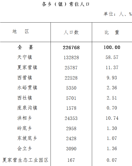 這次普查登記全縣各鄉(xiāng)(鎮(zhèn))人口分布如下: