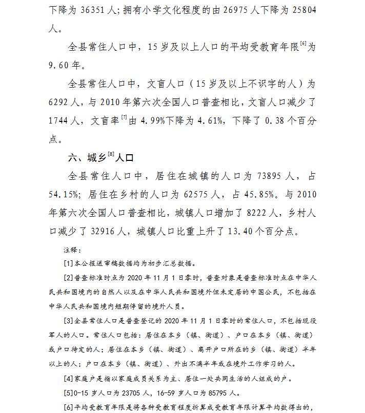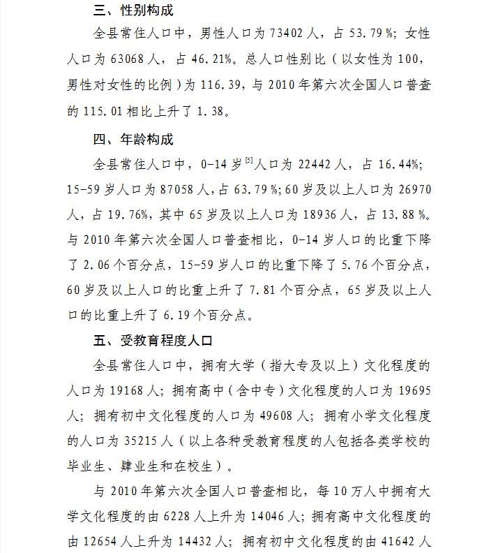 (山西?。幬淇h人口數(shù)據(jù)第七次全國(guó)人口普查公報(bào)