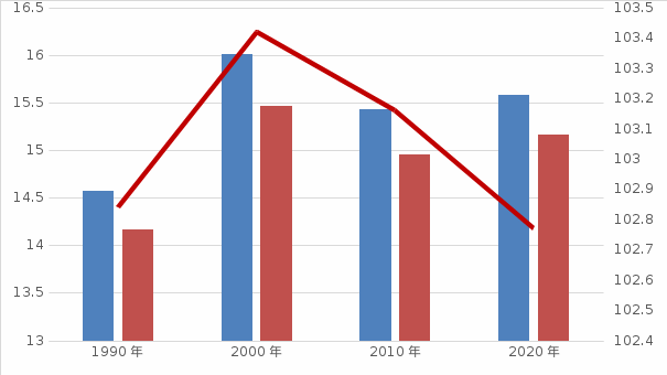 圖3-1近幾次人口普查人口性別構(gòu)成