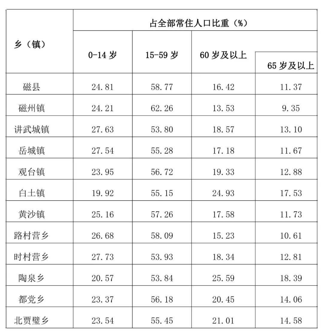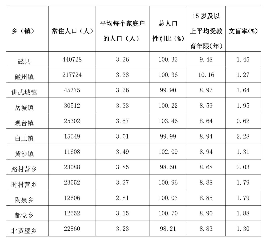 鄉(xiāng)(鎮(zhèn))普查重點(diǎn)數(shù)據(jù)(二)磁縣第七次全國人口普查公報(bào)