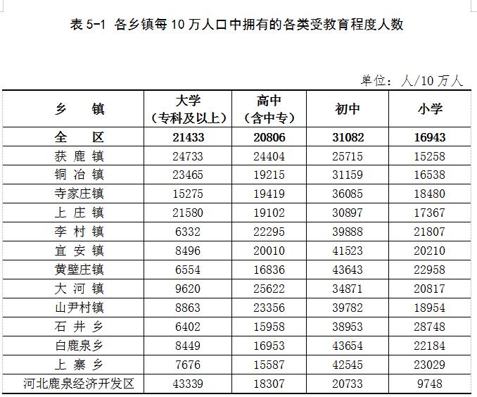 根據(jù)石家莊市鹿泉區(qū)第七次全國(guó)人口普查結(jié)果,現(xiàn)將2020年11月1日零時(shí)全區(qū)及分鄉(xiāng)鎮(zhèn)人口受教育基本情況公布如下: