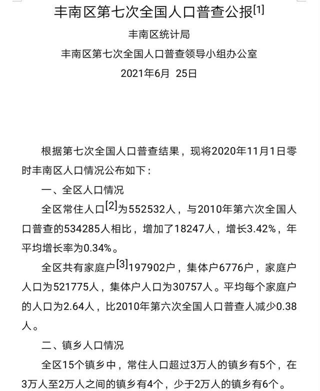 (河北省)豐南區(qū)人口數(shù)據(jù)第七次全國人口普查公報