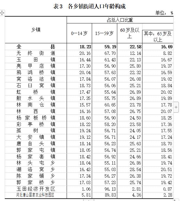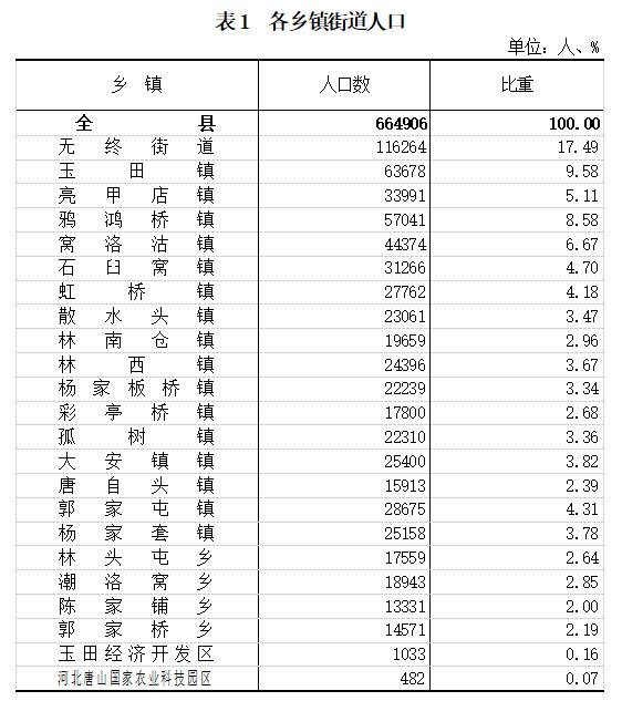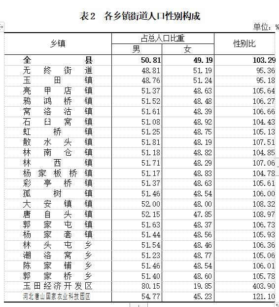 玉田縣第七次全國人口普查公報
