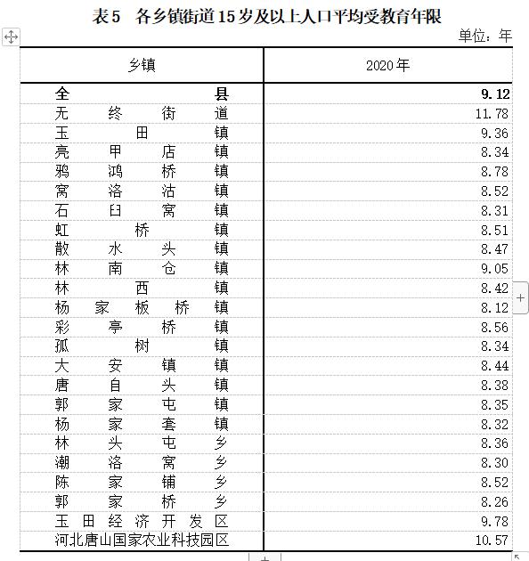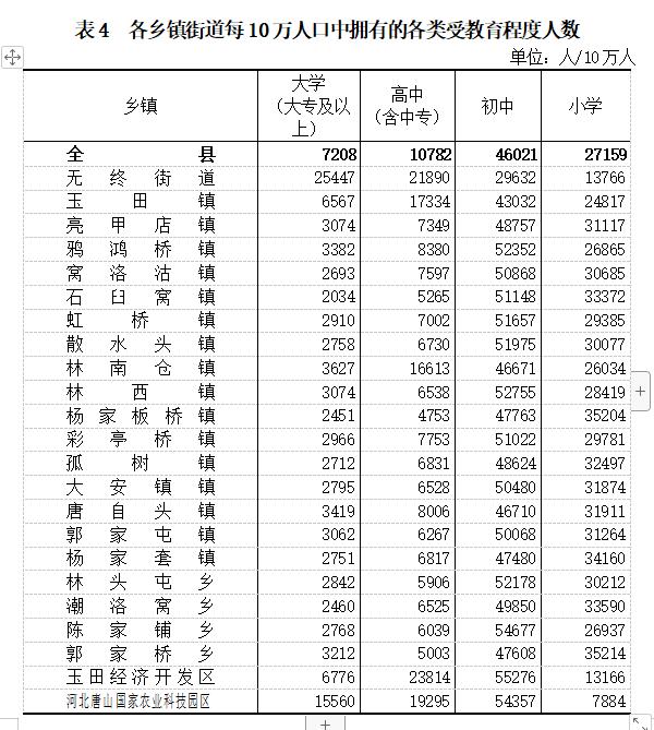 五、受教育情況玉田縣第七次全國人口普查公報