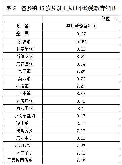 與2010年第六次全國人口普查相比,全縣常住人口中,15歲及以上人口的平均受教育年限[5]由8.88年提高至9.27年。