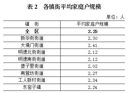 全區(qū)共有家庭戶[3] 111646戶、集體戶5807戶;家庭戶人口為251346人、集體戶人口為27687人。平均每個家庭戶的人口為2.25人,比2010年第六次全國人口普查的2.59人減少0.34人。張家口市橋西區(qū)第七次全國人口普查公報