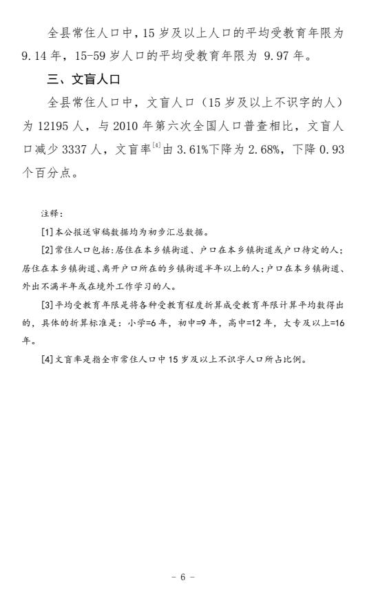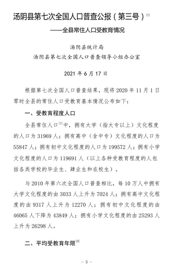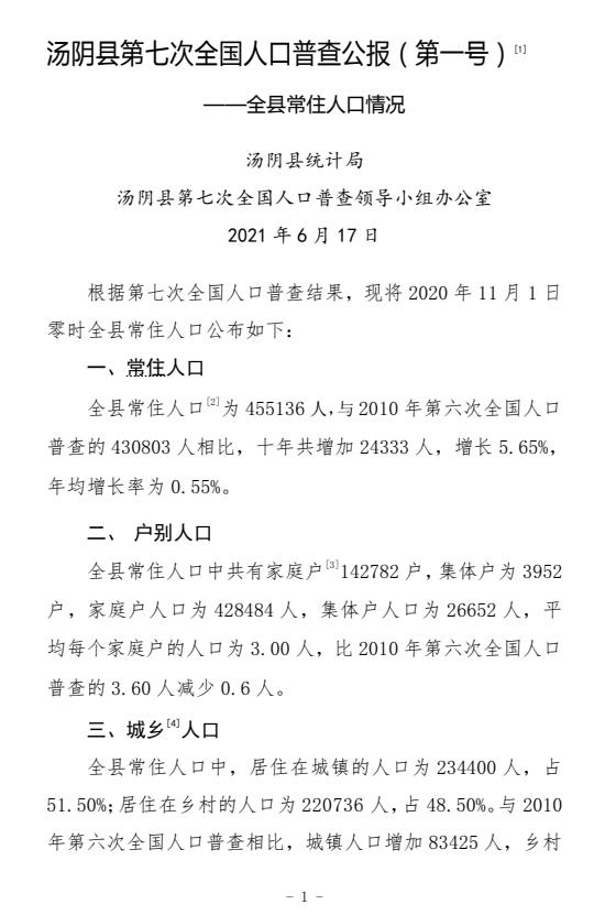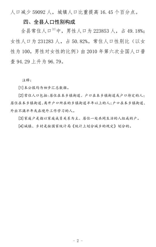 (河南?。幙h人口數(shù)據(jù)第七次全國人口普查公報