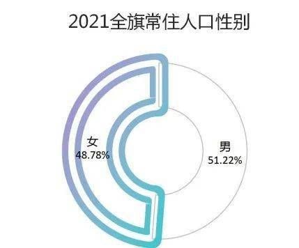 全旗常住人口中,男性人口為56021人,占51.22%;女性人口為53349人,占48.78%。常住人口性別比(以女性為100,男性對女性的比例)為105.01,較2010年第六次全國人口普查的102.9下降2.11。