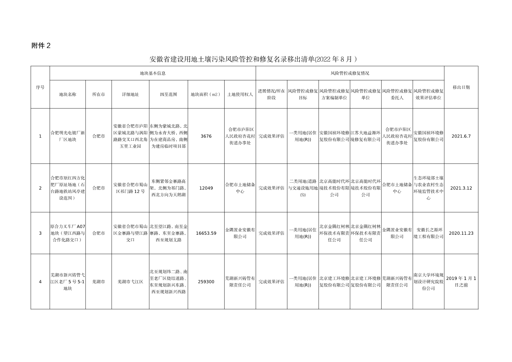 安徽省生態(tài)環(huán)境廳 安徽省自然資源廳關(guān)于發(fā)布《安徽省建設(shè)用地土壤污染風(fēng)險管控和修復(fù)名錄(2022年8月)》的公告