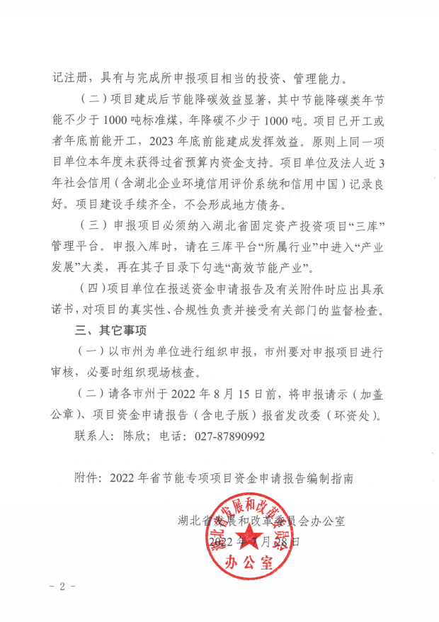 湖北省組織申報(bào)2022年省節(jié)能專項(xiàng)項(xiàng)目