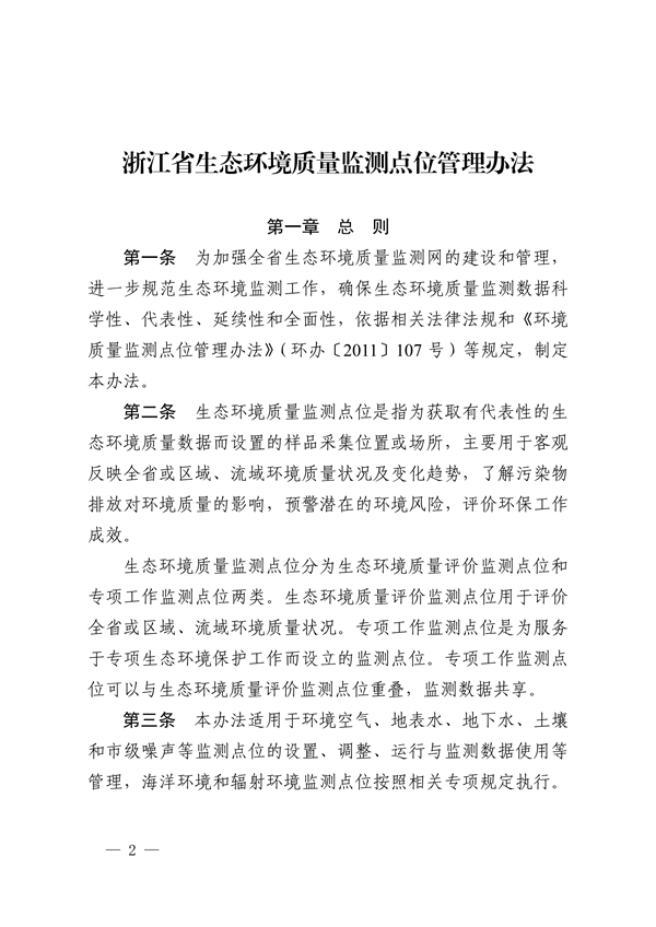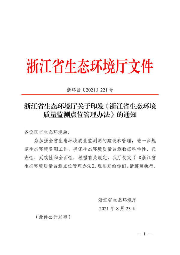 浙江省生態(tài)環(huán)境廳關(guān)于印發(fā)《浙江省生態(tài)環(huán)境質(zhì)量監(jiān)測點位管理辦法》的通知