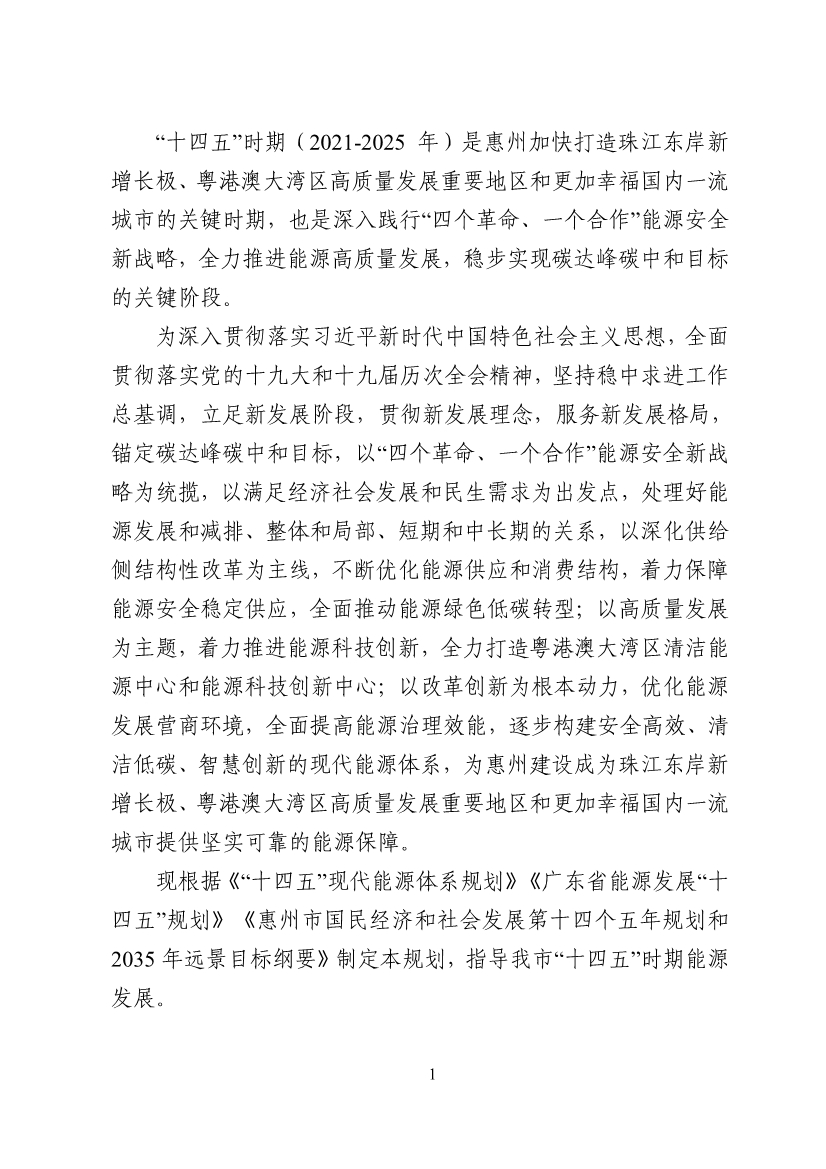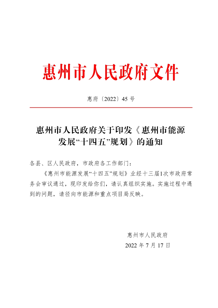 惠州市人民政府關(guān)于印發(fā)《惠州市能源發(fā)展“十四五”規(guī)劃》的通知