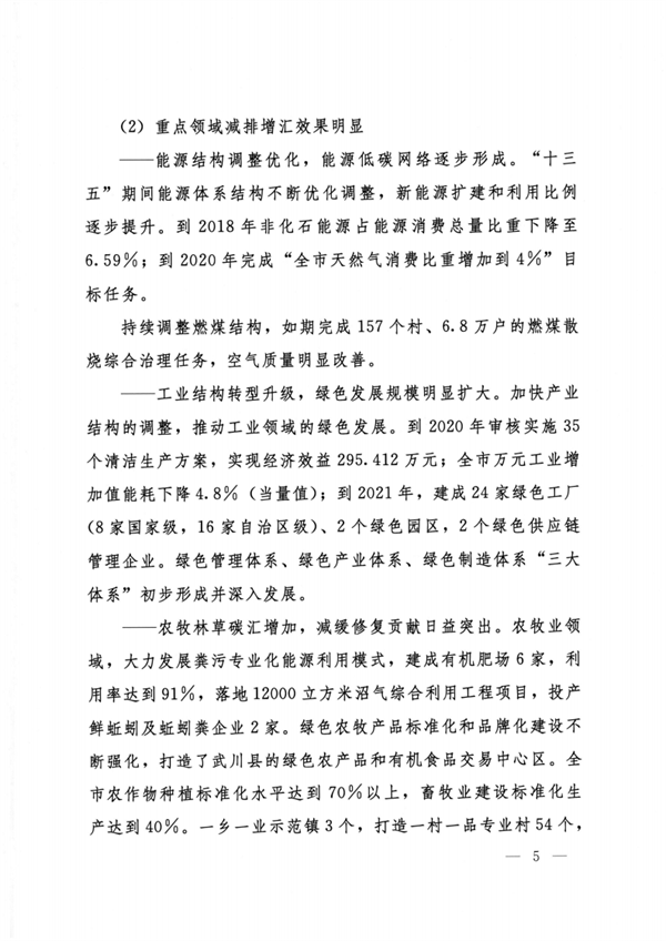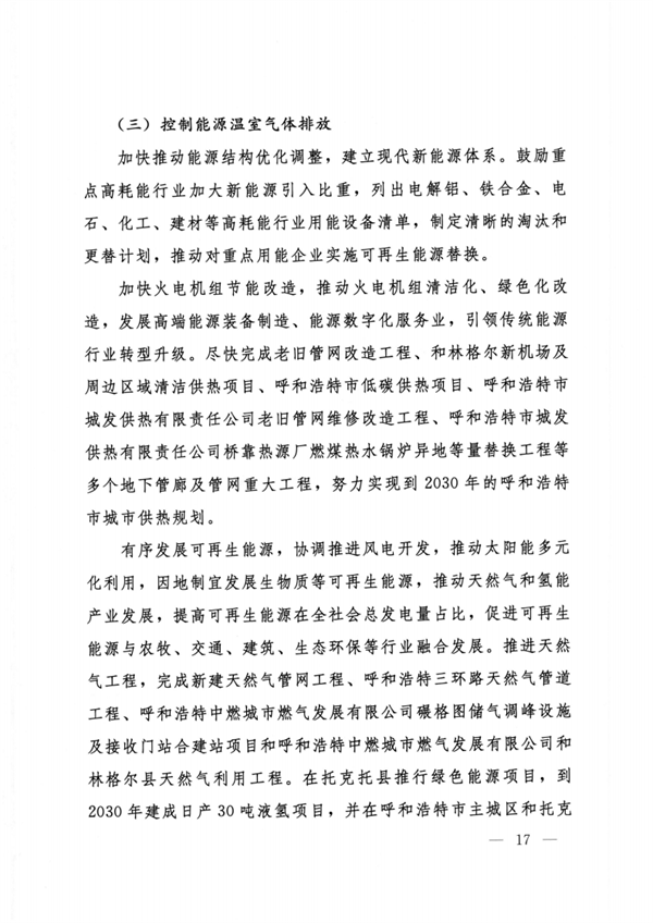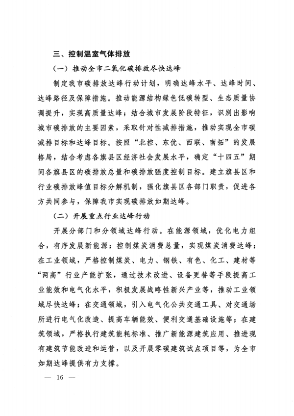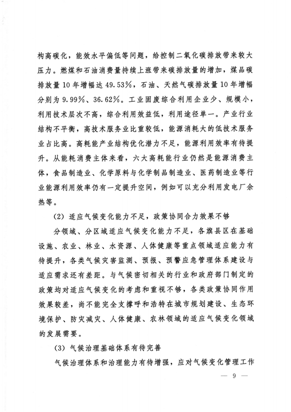 呼和浩特市人民政府印發(fā)《呼和浩特市“十四五”應對氣候變化規(guī)劃》,《規(guī)劃》由“現(xiàn)狀與形勢”“指導思想和主要目標”“控制溫室氣體排放”“適應氣候變化影響”“打造低碳試點示范”“推進治理體系和治理能力現(xiàn)代化”“保障措施”共七章37節(jié)組成。從推動全市二氧化碳排放盡快達峰、開展重點行業(yè)達峰行動、控制能源溫室氣體排放、控制工業(yè)溫室氣體排放等9個方面控制溫室氣體排放。從完善溫室氣體排放統(tǒng)計核算體系、提升溫室氣體監(jiān)測能力、強化碳排放權交易市場建設與管理等6個方面推進治理體系和治理能力現(xiàn)代化。