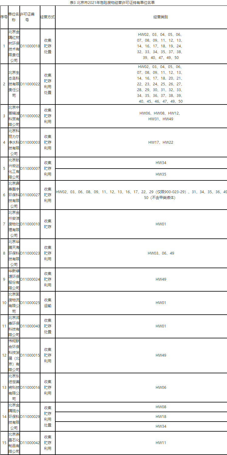 8月1日,北京市公布2021年固體廢物污染環(huán)境防治信息的通告,詳情如下: