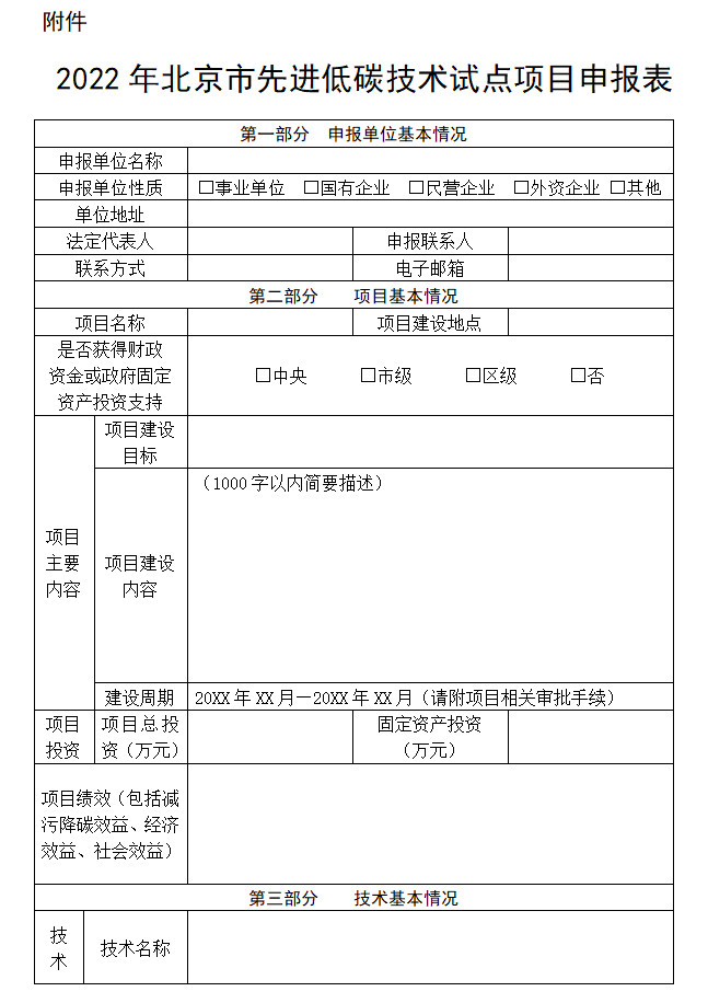 附件:2022年北京市先進(jìn)低碳技術(shù)試點(diǎn)項目申報表