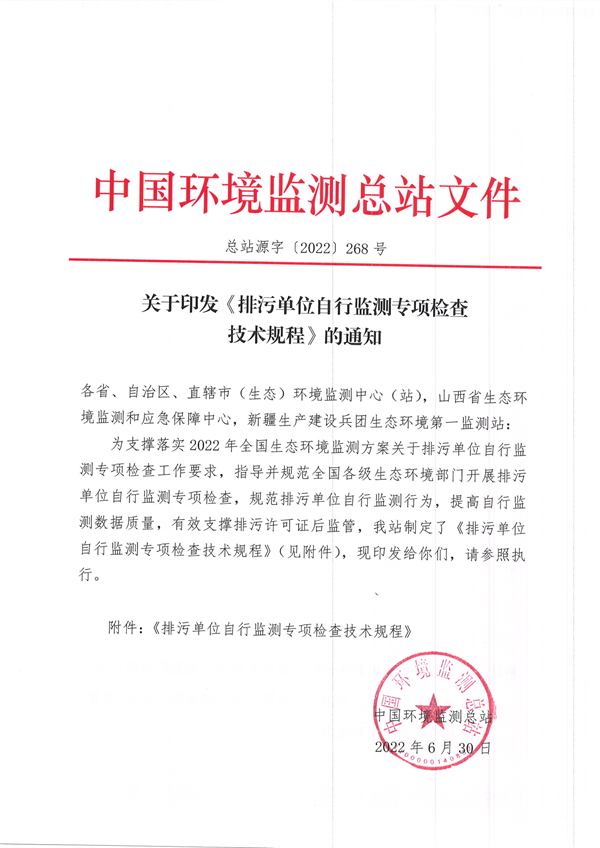 為支撐落實2022年全國生態(tài)環(huán)境監(jiān)測方案關于排污單位自行監(jiān)測專項檢查工作要求,指導并規(guī)范全國各級生態(tài)環(huán)境部門開展排污單位自行監(jiān)測專項檢查,規(guī)范排污單位自行監(jiān)測行為,提高自行監(jiān)測數(shù)據(jù)質(zhì)量,有效支撐排污許可證后監(jiān)管,中國環(huán)境監(jiān)測總站制定了《排污單位自行監(jiān)測專項檢查技術規(guī)程》,近日印發(fā)。