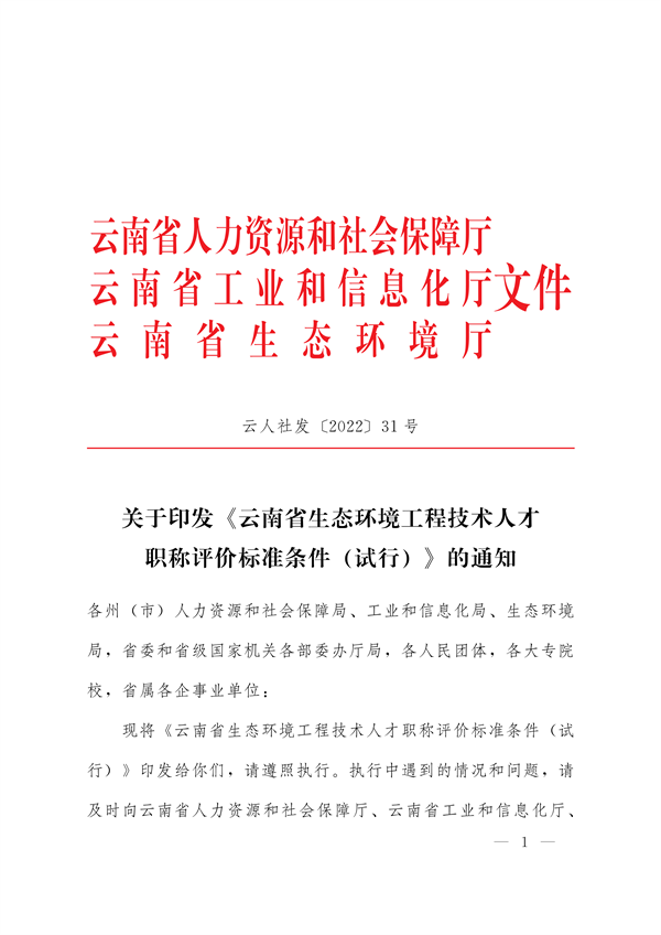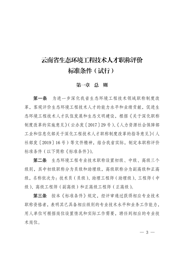 云南省生態(tài)環(huán)境工程技術(shù)人才職稱評價標(biāo)準(zhǔn)條件(試行)發(fā)布