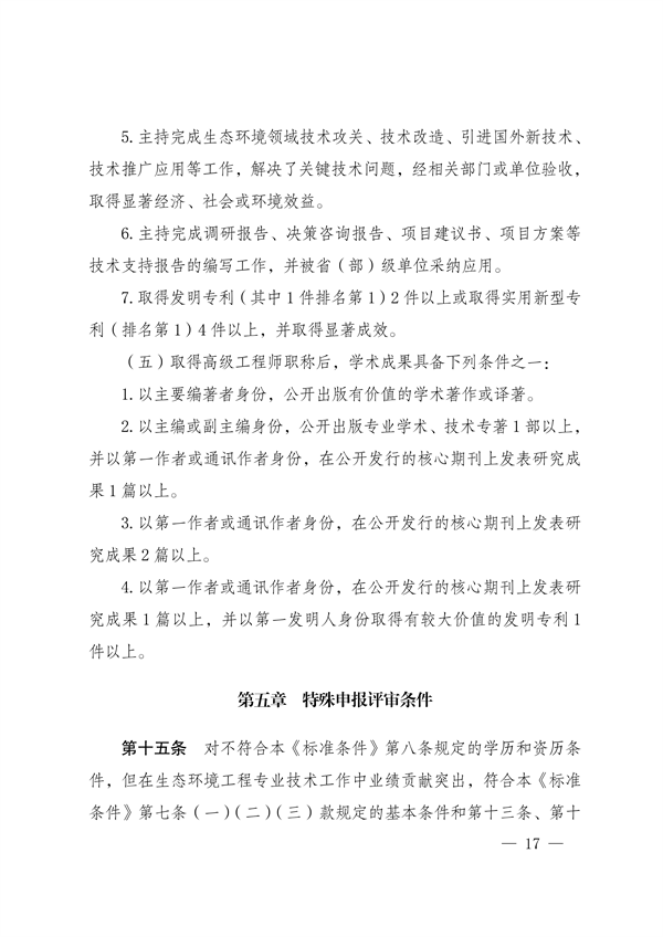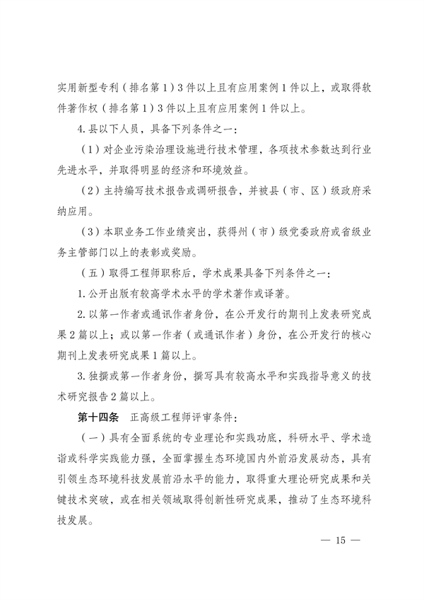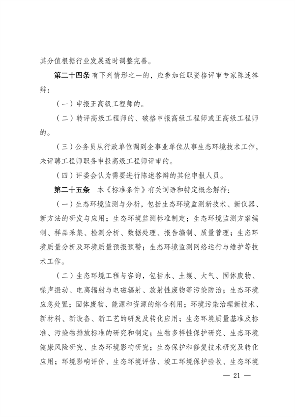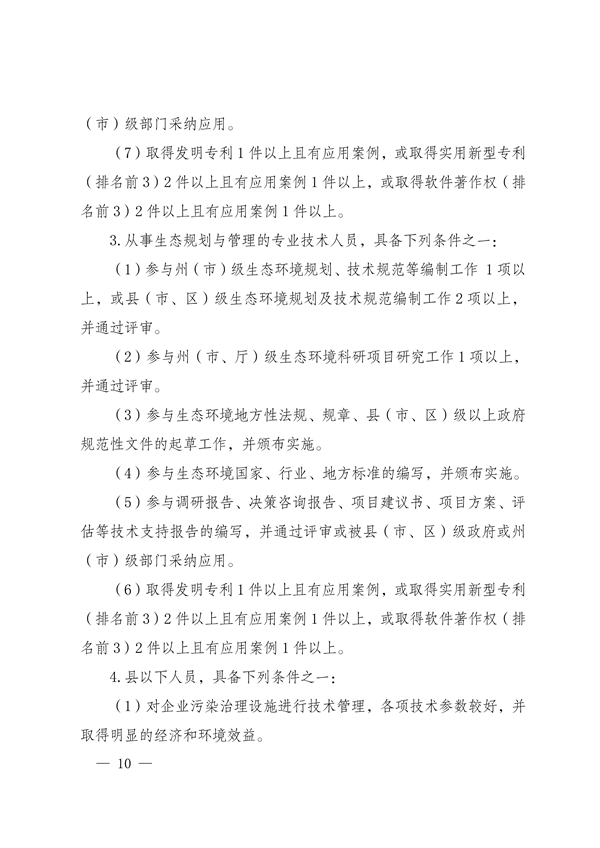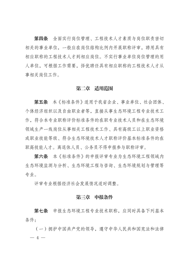 該《標(biāo)準(zhǔn)條件》適用于云南省企業(yè)、事業(yè)單位、社會團體、個體經(jīng)濟組織以及自由職業(yè)者等,直接從事生態(tài)環(huán)境工程專業(yè)技術(shù)工作,符合本專業(yè)職稱評價標(biāo)準(zhǔn)條件的在職專業(yè)技術(shù)人員和在生態(tài)環(huán)境領(lǐng)域生產(chǎn)一線崗位從事相關(guān)工程技術(shù)工作、具有高級工以上職業(yè)資格或職業(yè)技能等級、符合生態(tài)環(huán)境技術(shù)人才職稱評價基本標(biāo)準(zhǔn)條件的在職高技能人才。