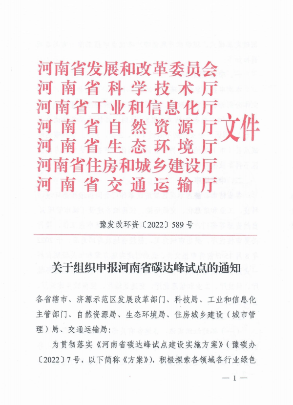 含縣、園區(qū)和企業(yè) 河南省組織申報碳達峰試點