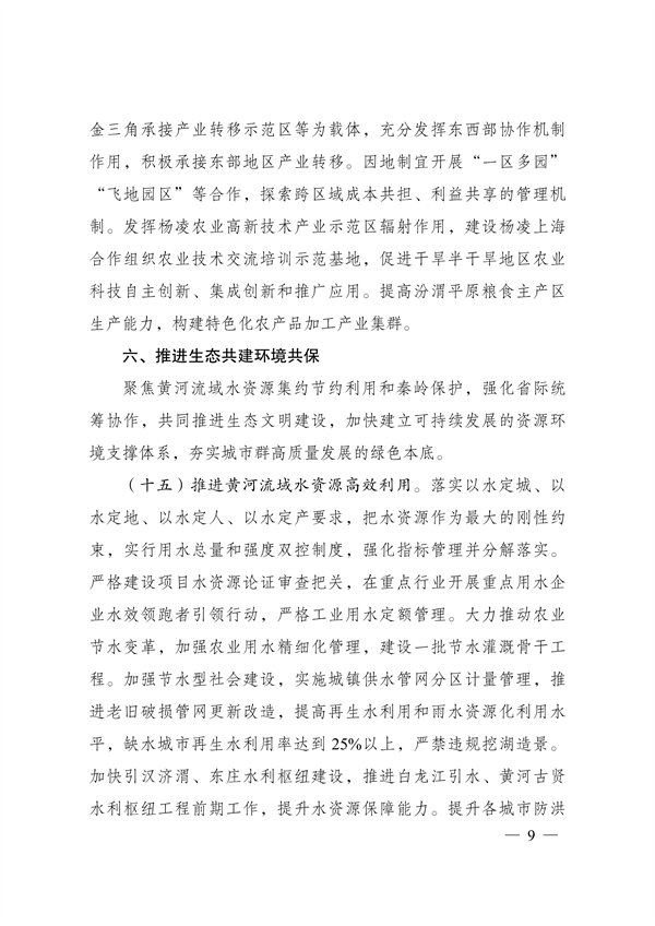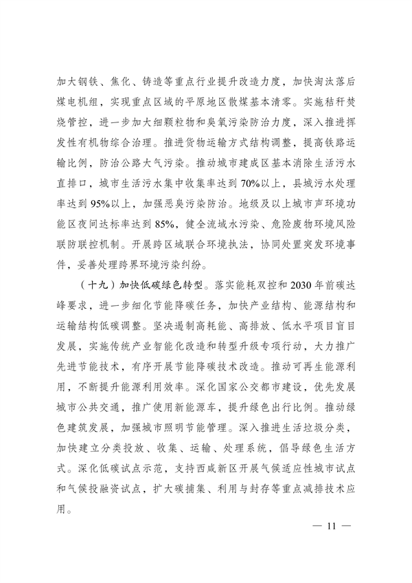 發(fā)改委印發(fā)《關(guān)中平原城市群建設(shè)“十四五”實(shí)施方案》,其中第六部分提出推進(jìn)生態(tài)共建環(huán)境共保,推進(jìn)環(huán)境污染聯(lián)合治理,提升黃河水生態(tài)質(zhì)量和穩(wěn)定性,加快低碳綠色轉(zhuǎn)型,具體有。強(qiáng)化汾渭平原大氣污染協(xié)同治理,加強(qiáng)重污染天氣應(yīng)急聯(lián)動(dòng),位于國家大氣污染防治重點(diǎn)區(qū)域的城市完成國家下達(dá)的煤炭消費(fèi)總量控制任務(wù)。城市生活污水集中收集率達(dá)到70%以上,縣城污水處理率達(dá)到95%以上,加強(qiáng)惡臭污染防治等。詳情如下: