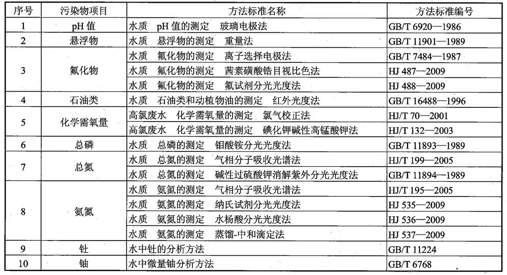 表7水污染物濃度測定方法標(biāo)準(zhǔn)