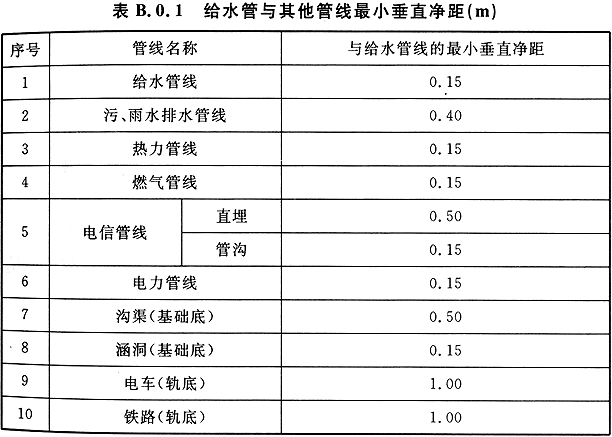 附錄 B 給水管與其他管線最小垂直凈距