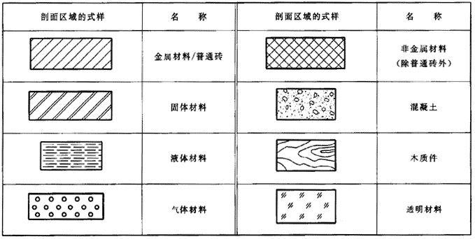 CAD工程圖中剖切面的剖面區(qū)域的表示見表10。