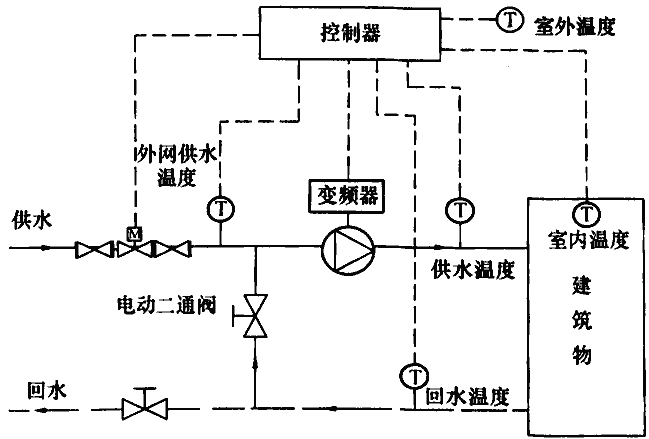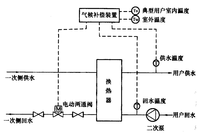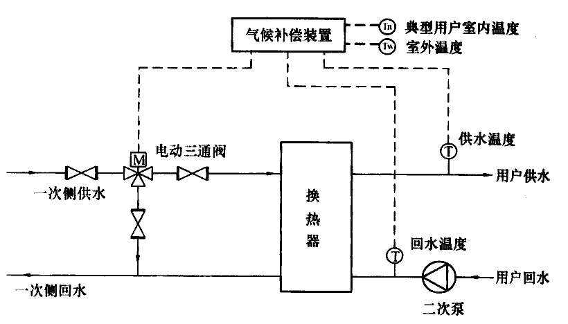 根據(jù)室外氣象條件和室內(nèi)溫度,自動調(diào)節(jié)供熱量的系統(tǒng)。