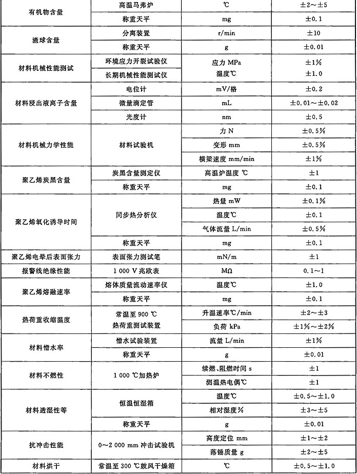 按測試項目要求選擇測試設(shè)備、儀表,其準確度范圍應(yīng)符合表2的規(guī)定。