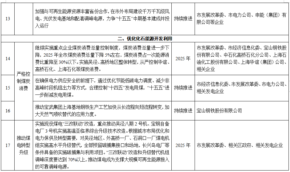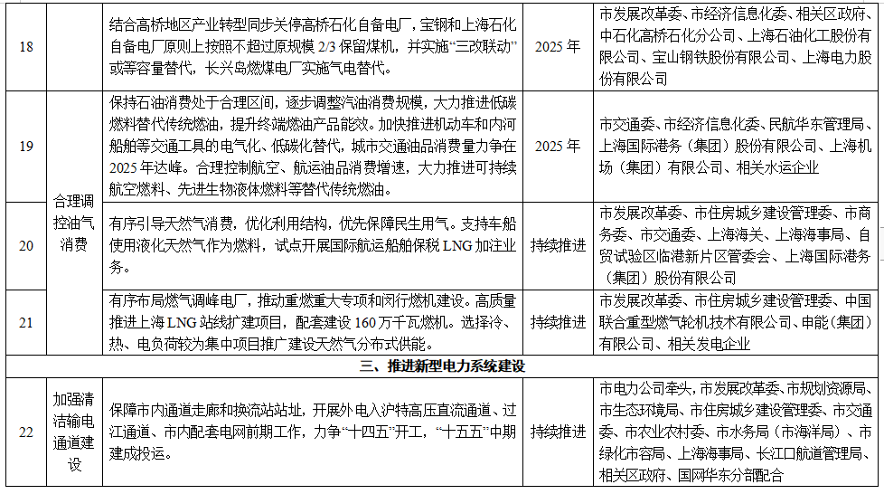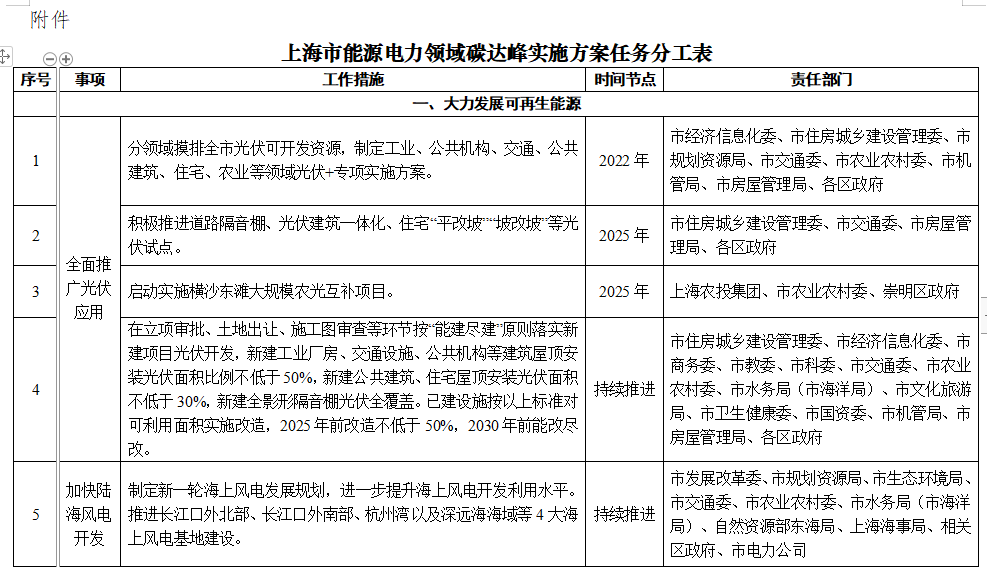 上海市能源電力領域碳達峰實施方案