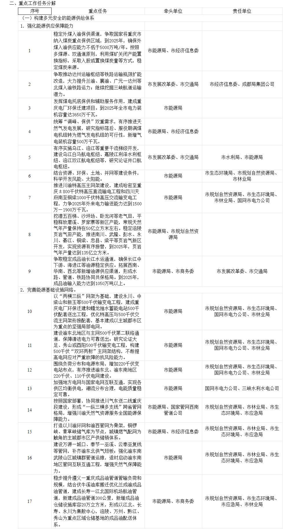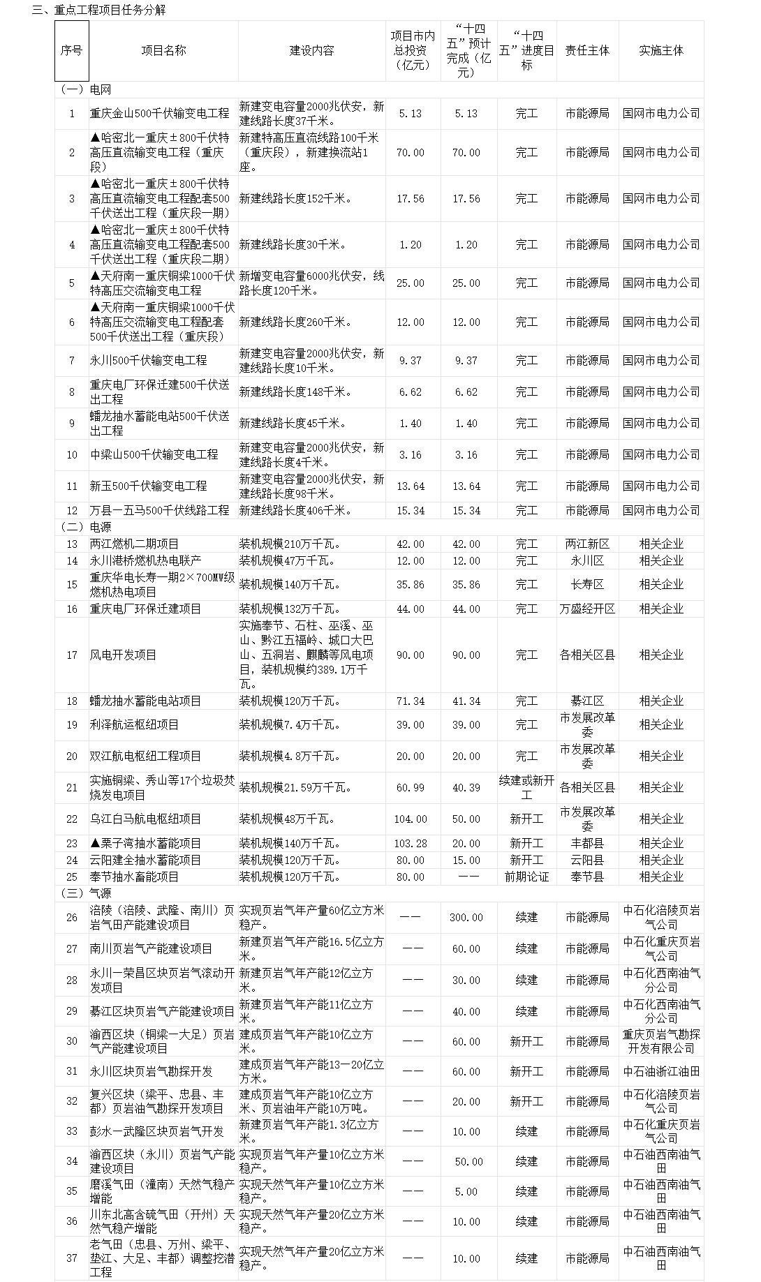 重慶市發(fā)展和改革委員會 重慶市能源局關(guān)于印發(fā)《“十四五”能源規(guī)劃任務(wù)分解實施方案》的通知