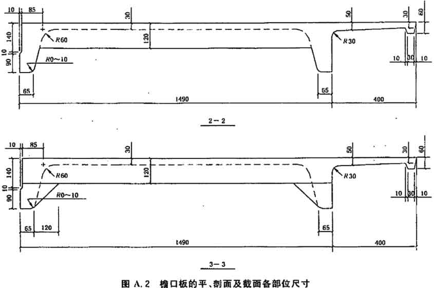 A.2 檐口板的平、剖面及截面各部位尺寸,應(yīng)符合圖A.2的規(guī)定。