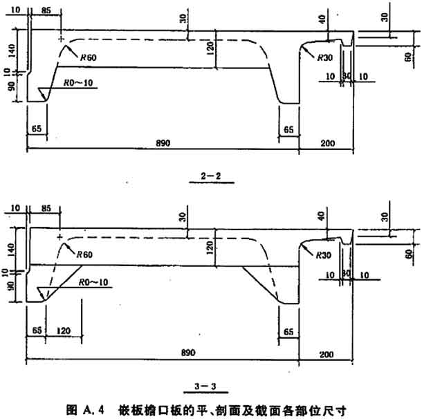 A.4 嵌板檐口板的平、剖面及截面各部位尺寸,應(yīng)符合圖A.4的規(guī)定。
