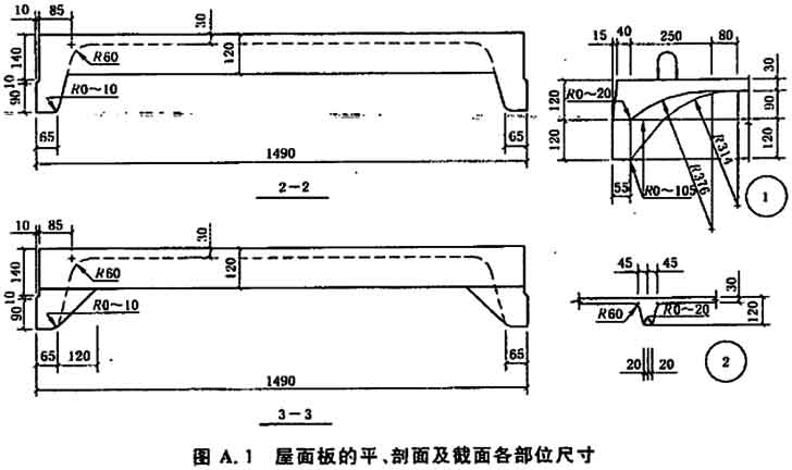 A.1 屋面板的平、剖面及截面各部位尺寸,應(yīng)符合圖A.1的規(guī)定。
