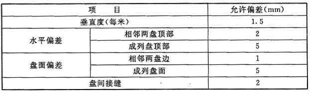 4.0.4 盤(pán)、柜單獨(dú)或成列安裝時(shí),其垂直、水平偏差及盤(pán)、柜面偏差和盤(pán)、柜間接縫等的允許偏差應(yīng)符合表4.0.4的規(guī)定。