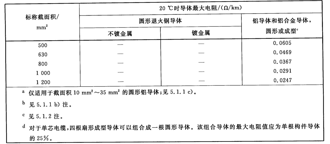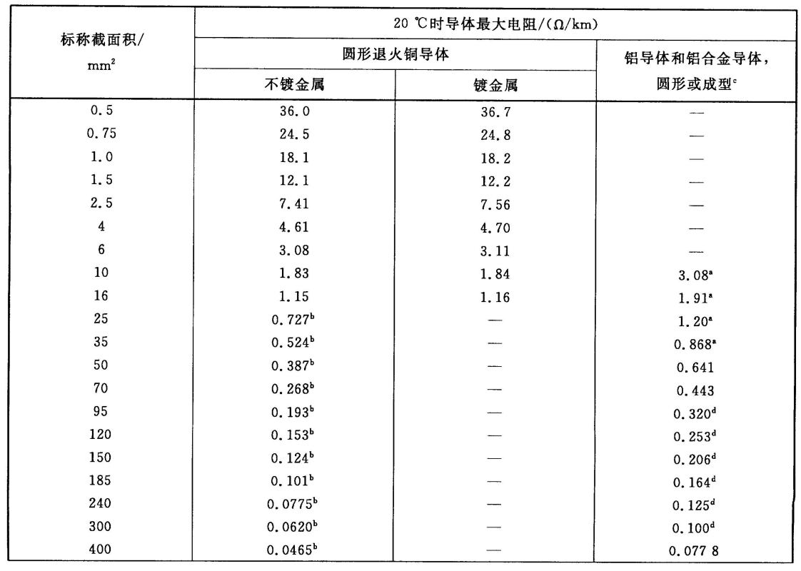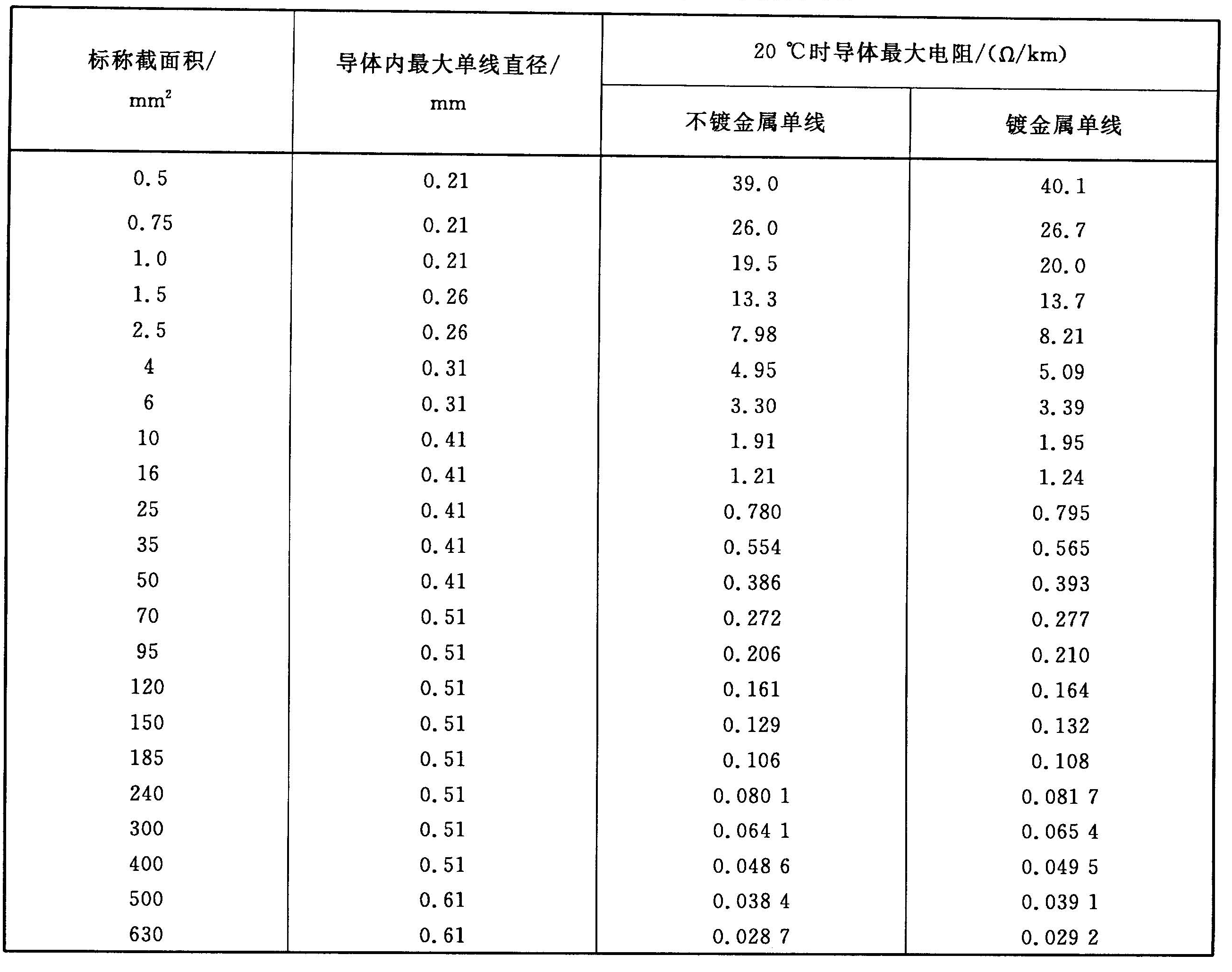 按第7章測(cè)定的20℃時(shí)每種導(dǎo)體的電阻值不應(yīng)超過(guò)表3或表4規(guī)定的相應(yīng)的最大值。