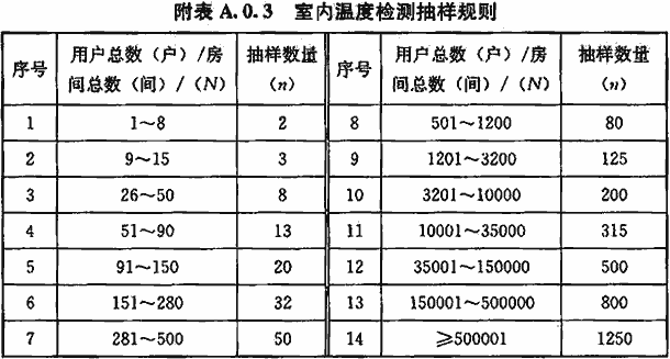 A.0.3 供熱系統(tǒng)室內(nèi)溫度樣本總量和抽樣樣本量的確定應(yīng)符合下列規(guī)定: