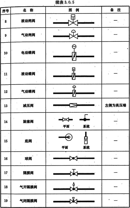 3.0.5 閥門的圖例宜符合表3.0.5的要求。
