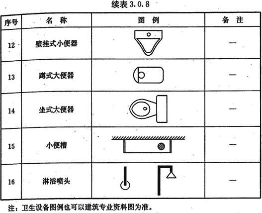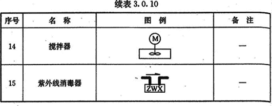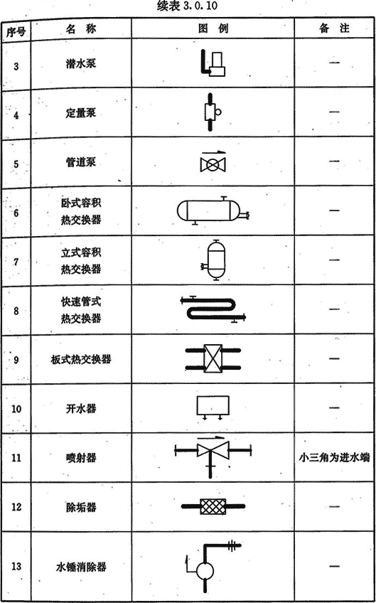 3.0.10 給水排水設(shè)備的圖裂符合表3.0.10的要求。