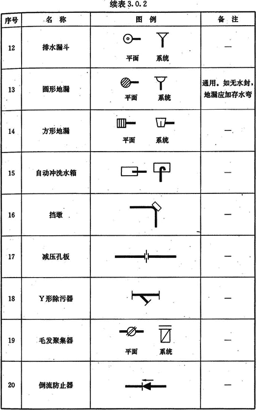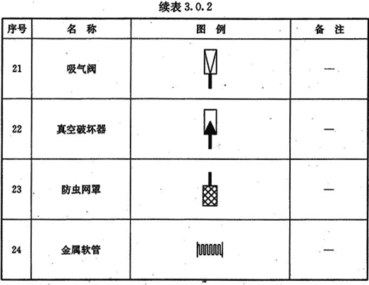 3.0.12 本標準未列出的管道、設(shè)備、配件等圖例,設(shè)計人員可自行編制并作說明,但不得與本標準相關(guān)圖例重復(fù)或混淆。