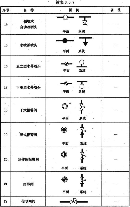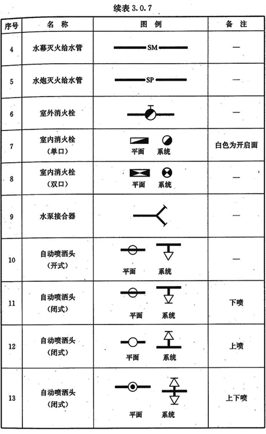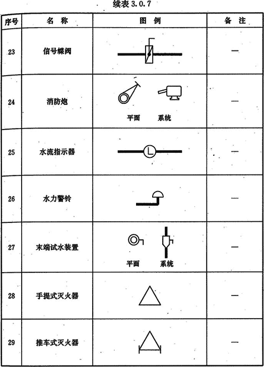 3.0.7 消防設(shè)施的圖例宜符合表3.0.7的要求。