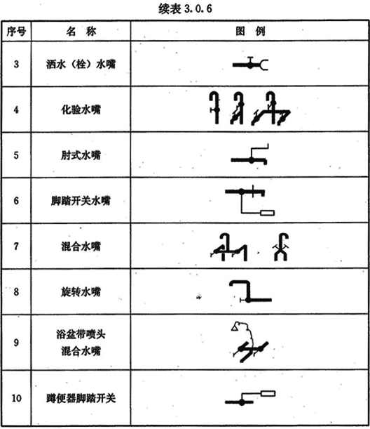 3.0.6 給水配件的圖例宜符合表3.0.6的要求。