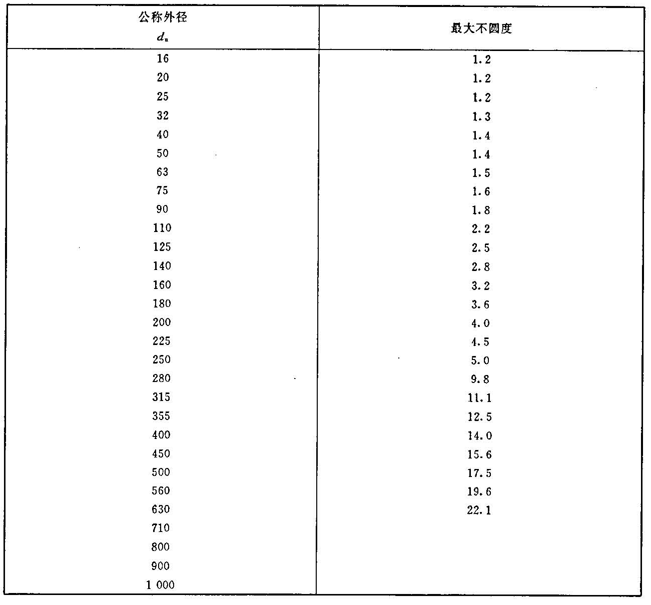 對公稱直徑小于等于630 mm的直管的不圓度的推薦要求見表B1。盤管及公稱外徑大于630 mm管材的不圓度可由供需雙方商定。